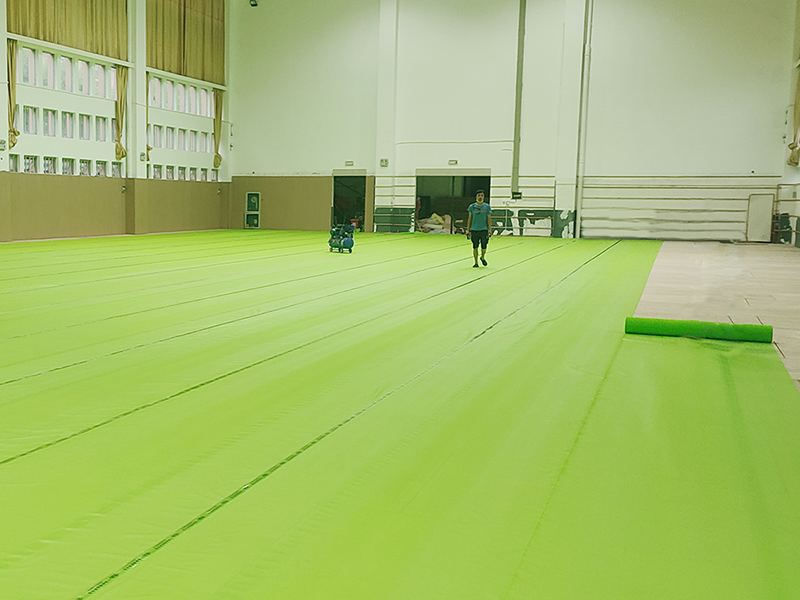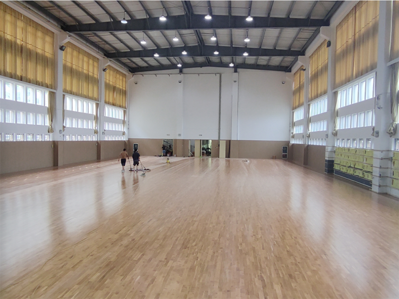 黨灣一小位于浙江省杭州市蕭山區黨灣鎮,景色優美。場館內采用楓樺木D級單層龍骨結構運動木地板,地板上面再鋪一層地膠,適合羽毛球場館的運動特性,同時,性價比很高,使用效果也很不錯