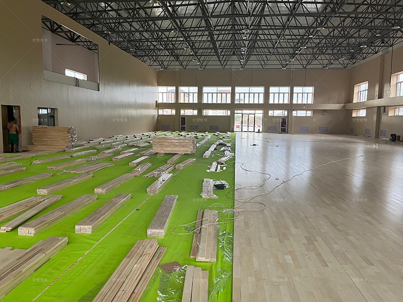 采用宏憲SPTFL01結構,充分保證場地的球體回彈性和通風性能,原木色的地板與周圍淡黃的墻體相呼應,營造更加寬闊的場地氛圍。地板紋路清晰,采用工廠UV紫外防滑耐磨漆,滿足比賽場地規定的防滑標準,使運動員擁有更好的運動體驗。從開始施工到驗收成功,共歷時一周時間,在保證質量的情況下,高效完成鋪裝,校領導們都非常滿意。